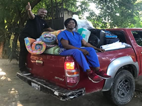 HHPNetwork loading all terrain trucks with medicine for a clinic on a mountainous area in Arcahaie