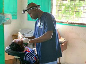 A Haitian dentist providing dental care to patients in a rural area in Cabaret, Haiti